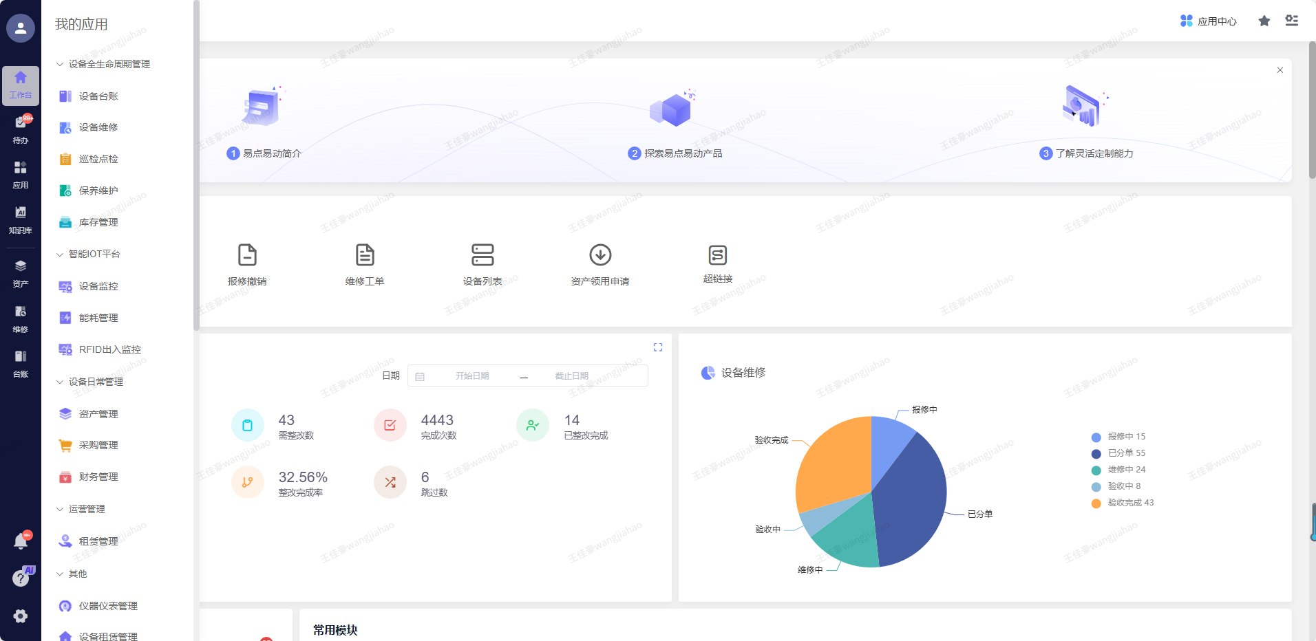了解了设备全生命周期管理的核心环节后,不难发现:全周期管理需要大量的数据支撑、流程规范与协同配合,仅靠人工管理不仅效率低,还容易出现数据混乱、流程脱节等问题。而易点易动设备管理系统,正是为解决这些痛点而生,为企业提供 “全流程、数字化、智能化” 的设备全生命周期管理解决方案。