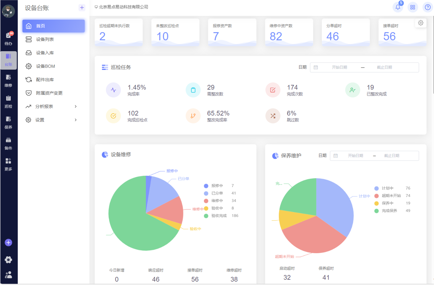 在制造业中,设备是生产的核心要素,其运行状态直接影响生产效率和产品质量。易点易动设备管理系统能够对生产线上的各类设备,如数控机床、自动化生产线、机器人等进行全面管理。通过实时监控设备运行状态,及时发现并解决设备故障,确保生产线的稳定运行。系统还能根据生产计划和设备维护需求,合理安排设备的保养和维修工作,提高设备利用率,降低生产成本。