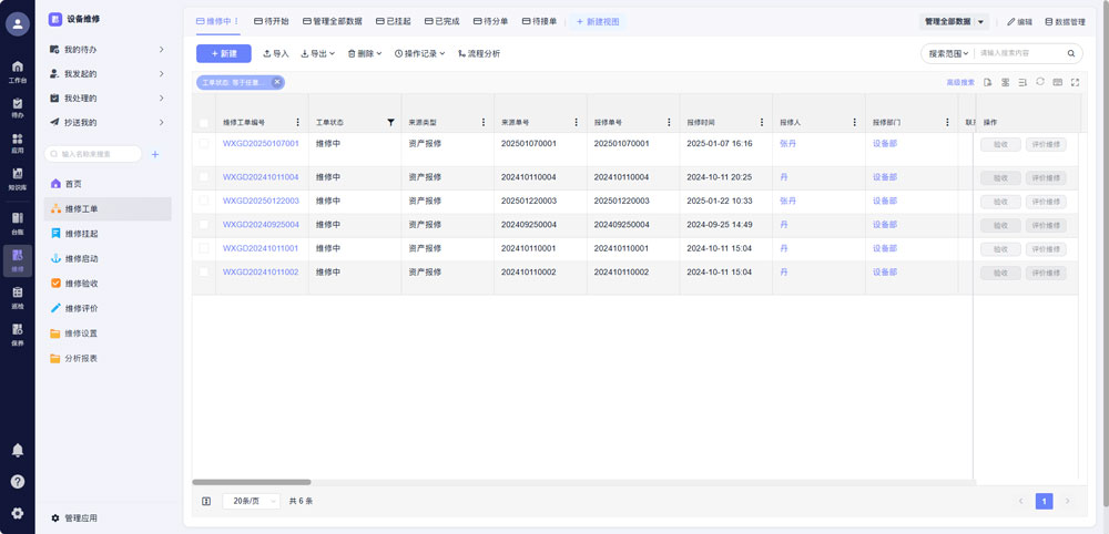 员工发现设备故障后,只需扫码即可快速提交报修单,系统自动关联设备档案、历史维修记录及故障现象,AI算法会根据故障类型、维修人员技能特长、当前忙闲状态,自动匹配最优维修人员并派发工单,避免人工派单的主观性与低效性。维修过程中,维修人员可通过移动端上传故障照片、更换备件信息、耗时记录,报修人及管理层可实时查看工单进度,无需反复沟通询问。维修完成后,系统自动生成维修报告,积累故障处理经验,为后续同类故障快速解决提供支撑。某物业公司应用该功能后,平均报修响应时间从2.3小时缩短至0.8小时,维修工单完成率提升至99%。