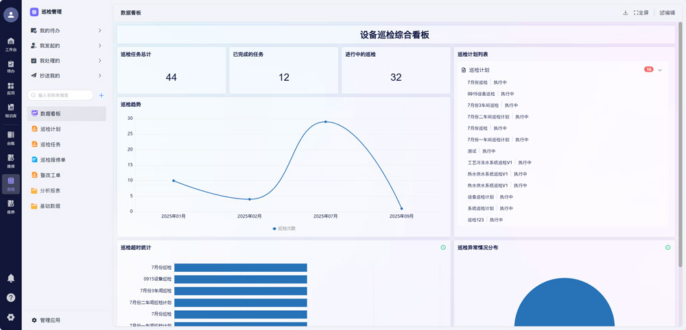 ●巡检计划智能化:系统根据设备类型、运行环境、历史故障数据,自动生成巡检周期和内容,还能动态调整巡检频率,精准维护,不用过度巡检浪费人力,也不会巡检不到位漏隐患。