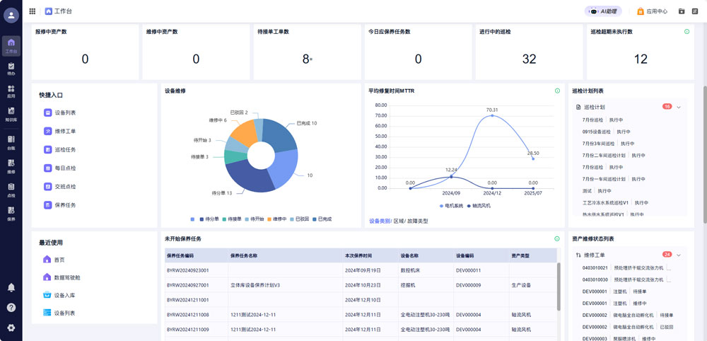 很多工厂的设备管理还停留在手工时代,依赖Excel表格、纸质记录和人工记忆来管理设备。这种传统方式存在诸多弊端:设备信息分散在各个部门,关键时刻找不到对应资料;维修记录无法有效积累,同样的故障反复出现却找不到规律;保养计划全靠人工安排,一忙起来就容易遗漏;备件库存要么积压资金,要么关键时刻缺件影响维修。数据显示,国内大多数工厂的设备非计划停机时间中,有超过60%是由于管理不到位导致的,而不是设备本身的质量问题。这些问题困扰着无数工厂管理者,也正是AI技术要切入的突破口。