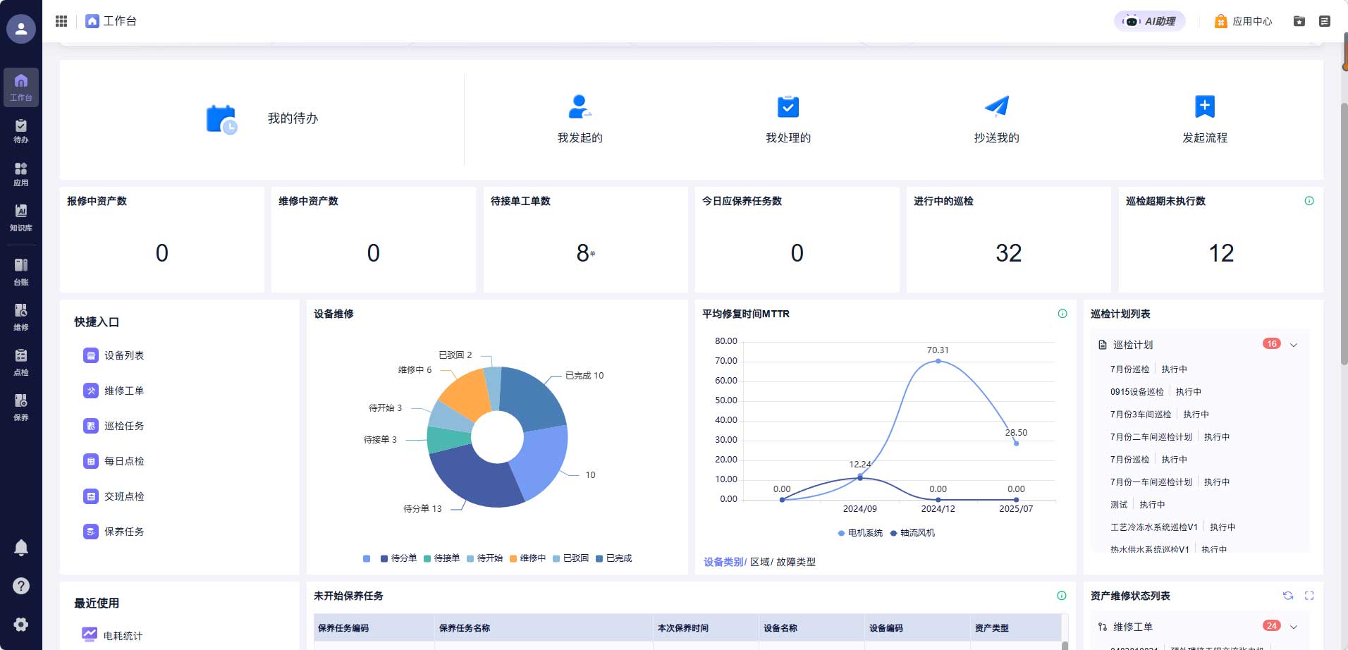 同时,AI会分析备件消耗规律,预测备件需求,提醒及时补充,避免备件积压或缺货;还能生成多维数据报表,帮管理层看清设备运维成本、资产利用率,不用靠经验决策,怎么优化、怎么省钱,数据说了算。