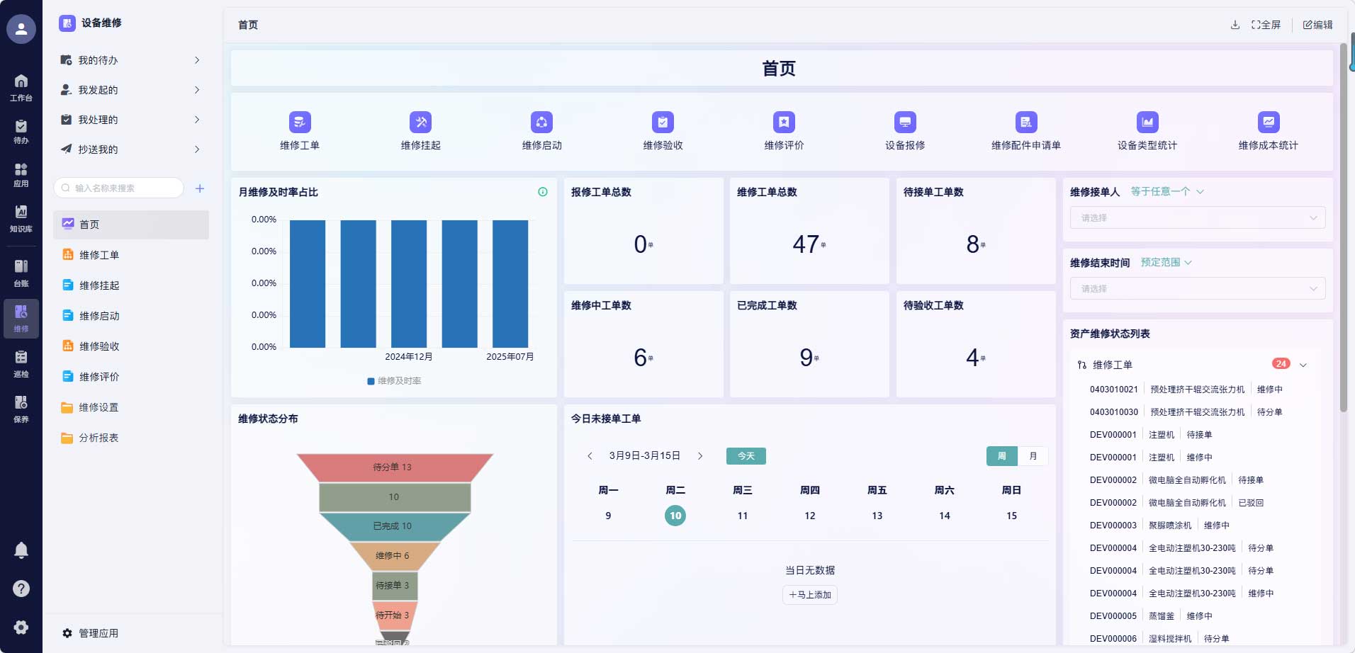 核心实操:建立“一键报修-智能派单-维修跟进-验收归档”的闭环流程,员工发现设备故障后,可快速提交报修申请,明确故障现象、设备位置,维修人员及时响应,避免因沟通不畅、派单延迟导致停机时间延长。