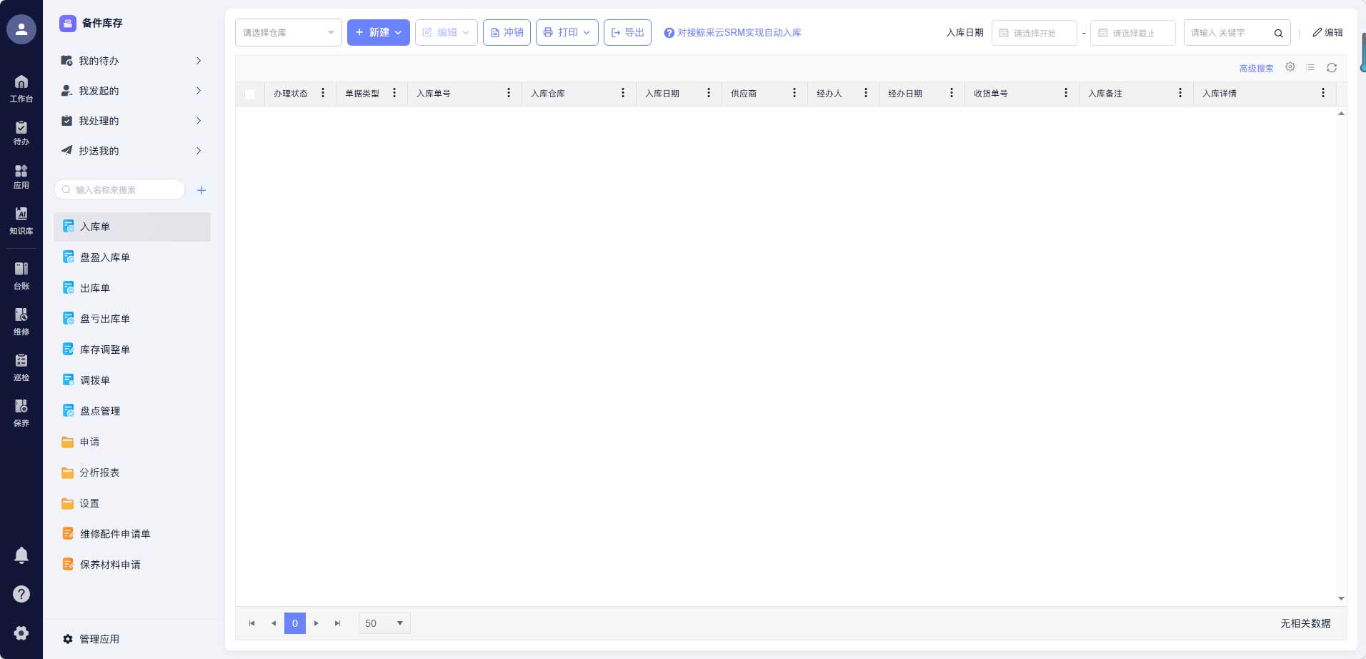核心实操:建立备件库存台账,明确备件规格、数量、存放位置,设置安全库存预警,避免备件积压或短缺;领用、消耗全程记录,做到“按需领用、有据可查”,杜绝备件浪费、丢失,降低备件采购成本。