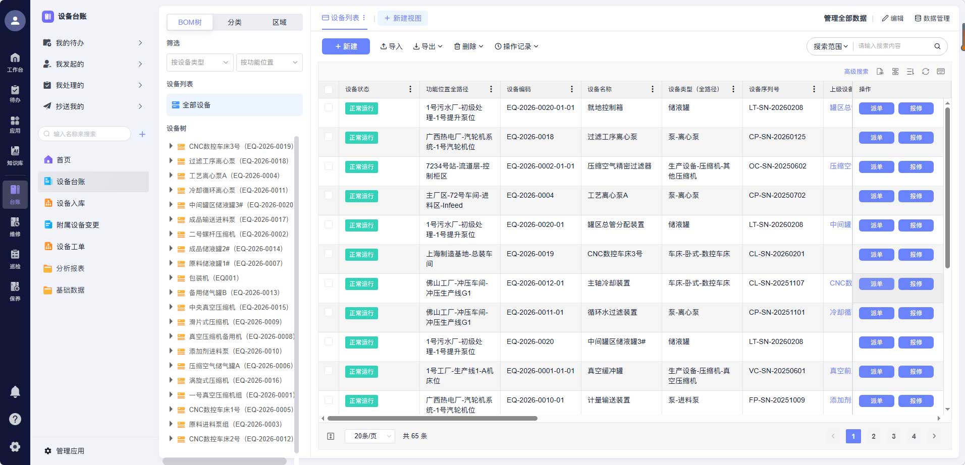 系统内置AI算法,结合设备历史巡检数据、维修记录,构建故障特征库和设备健康模型,能精准识别轴承磨损、电机过热、管路泄漏等早期隐性故障,提前30-45天发出预警,还会根据故障严重程度,自动划分预警等级——轻度异常推送提醒,中度异常自动生成巡检/保养工单,重度异常联动停机保护,从“救火”模式彻底转为“防火”模式。