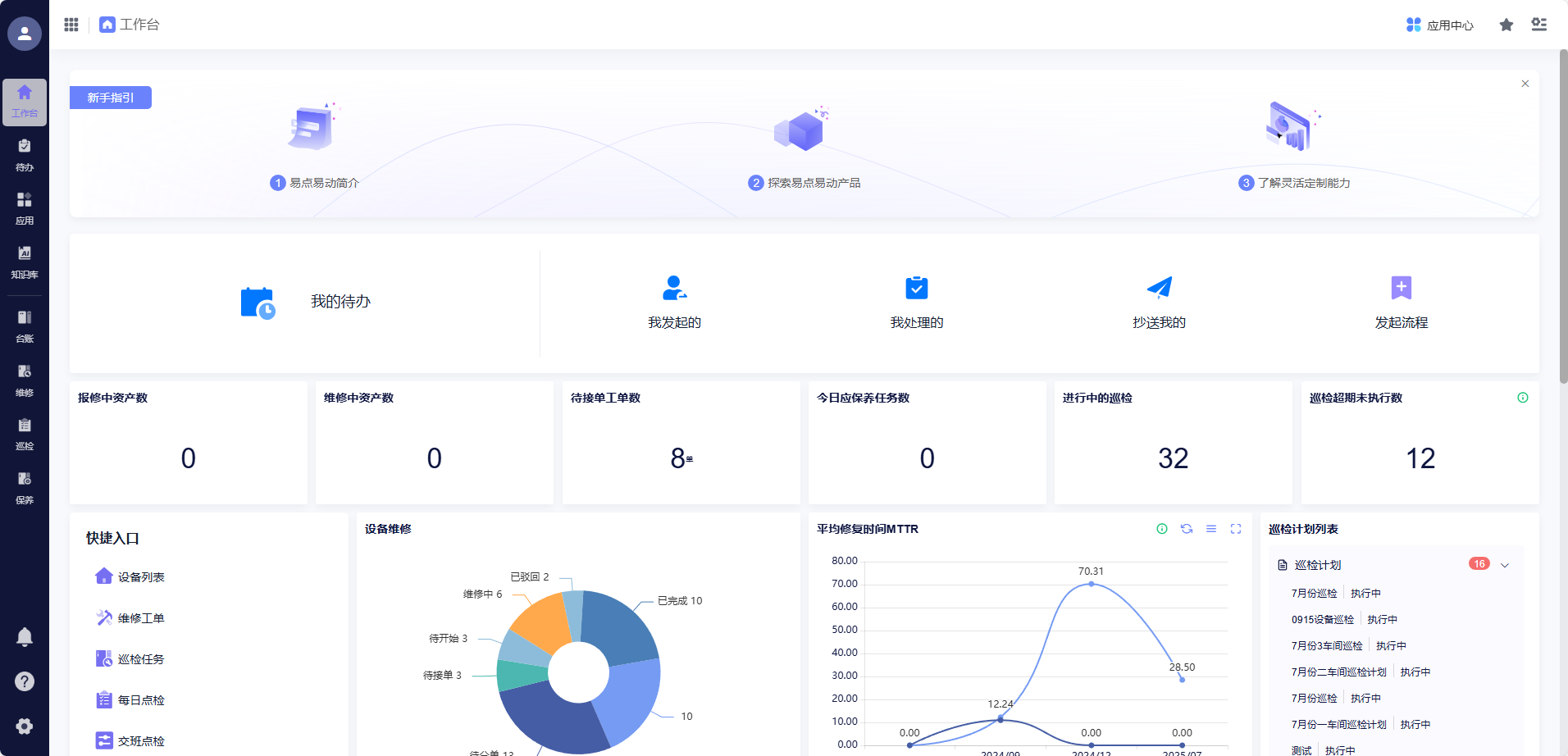 一套成熟的 EAM 系统(如易点易动设备管理系统)通常包含以下五大模块:
