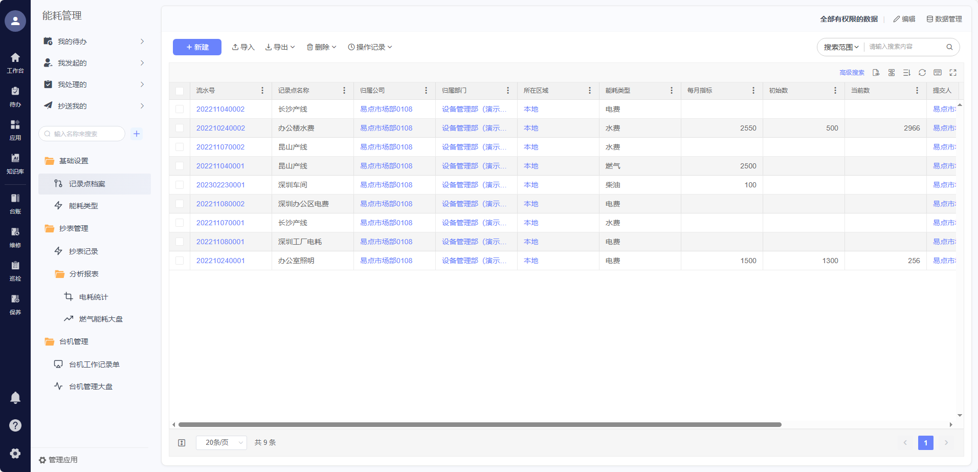 在“双碳”目标下,设备能耗管理成为重点。易点易动设备管理平台搭建多维度能耗分析模型,实时采集设备水电油消耗数据,识别高耗能设备及能耗浪费节点;结合保养计划优化设备运行参数,推送节能建议,平均降低能耗成本5%-10%,既符合环保要求,又为企业节约运营开支。