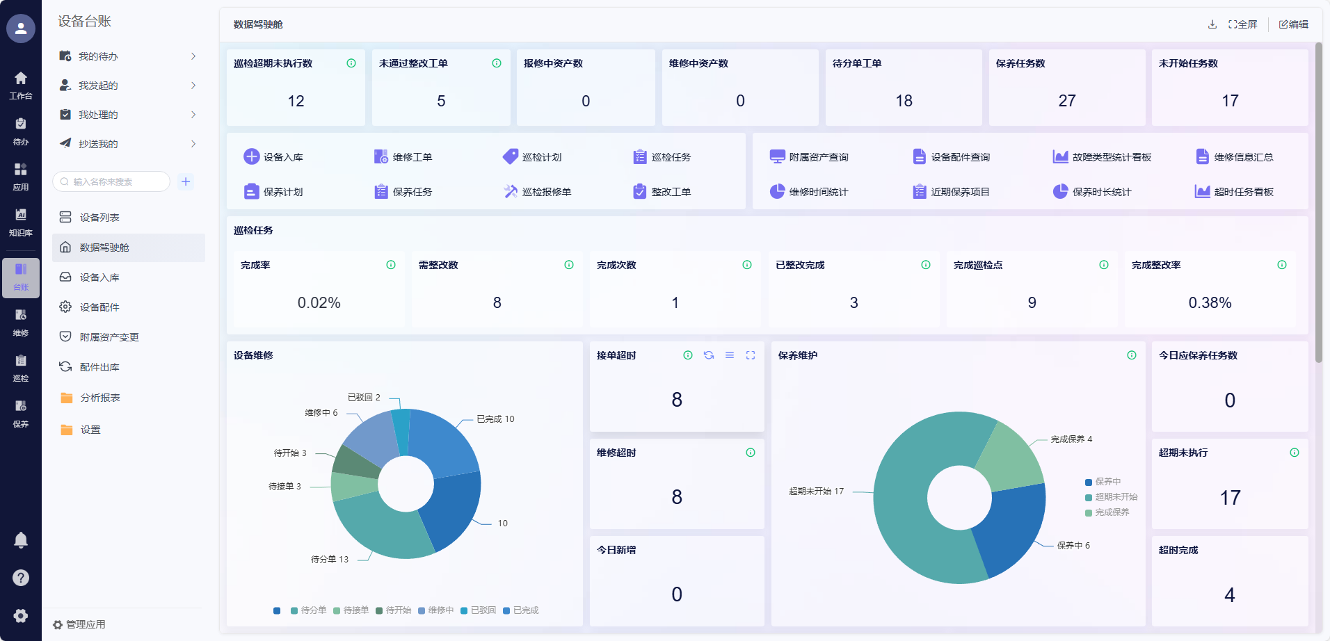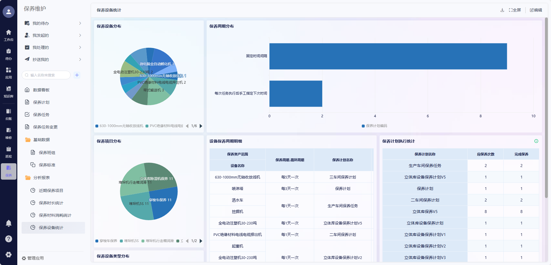 设备管理平台自动汇总设备使用率、故障率、维护成本、闲置率等数据,生成多维度统计报表与可视化看板。管理层可直观掌握设备运行状态、管理瓶颈,如通过分析设备故障间隔时间,判断是否需要更新换代;通过闲置设备统计,搭建共享池实现跨部门调拨,减少重复采购,让管理决策从“经验判断”转向“数据驱动”。
